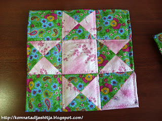Затем квадратики сшивают между собой швом" через край" и собирают в блоки.